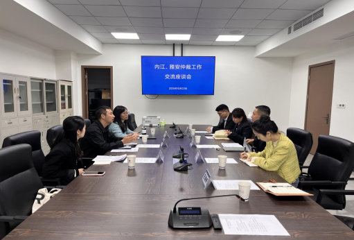 2025年10月23日,内江市司法局党组成员、副局长、内江仲裁委员会秘书长孙勇君一行莅临雅安考察交流仲裁工作。雅安市司法局党组成员、副局长、雅安仲裁委员会副秘书长王兴及雅安仲裁委员会秘书处相关人员陪同考察。